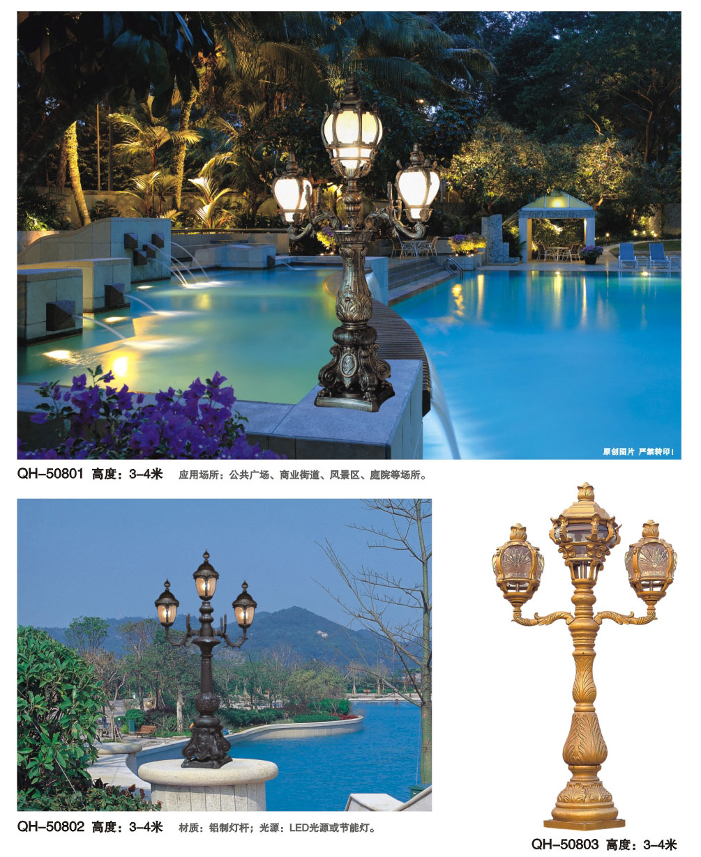 用途:庭院灯适用市政工程、园林亮化工程和电力局、开发区、别墅区、广场等户外路灯照明工程